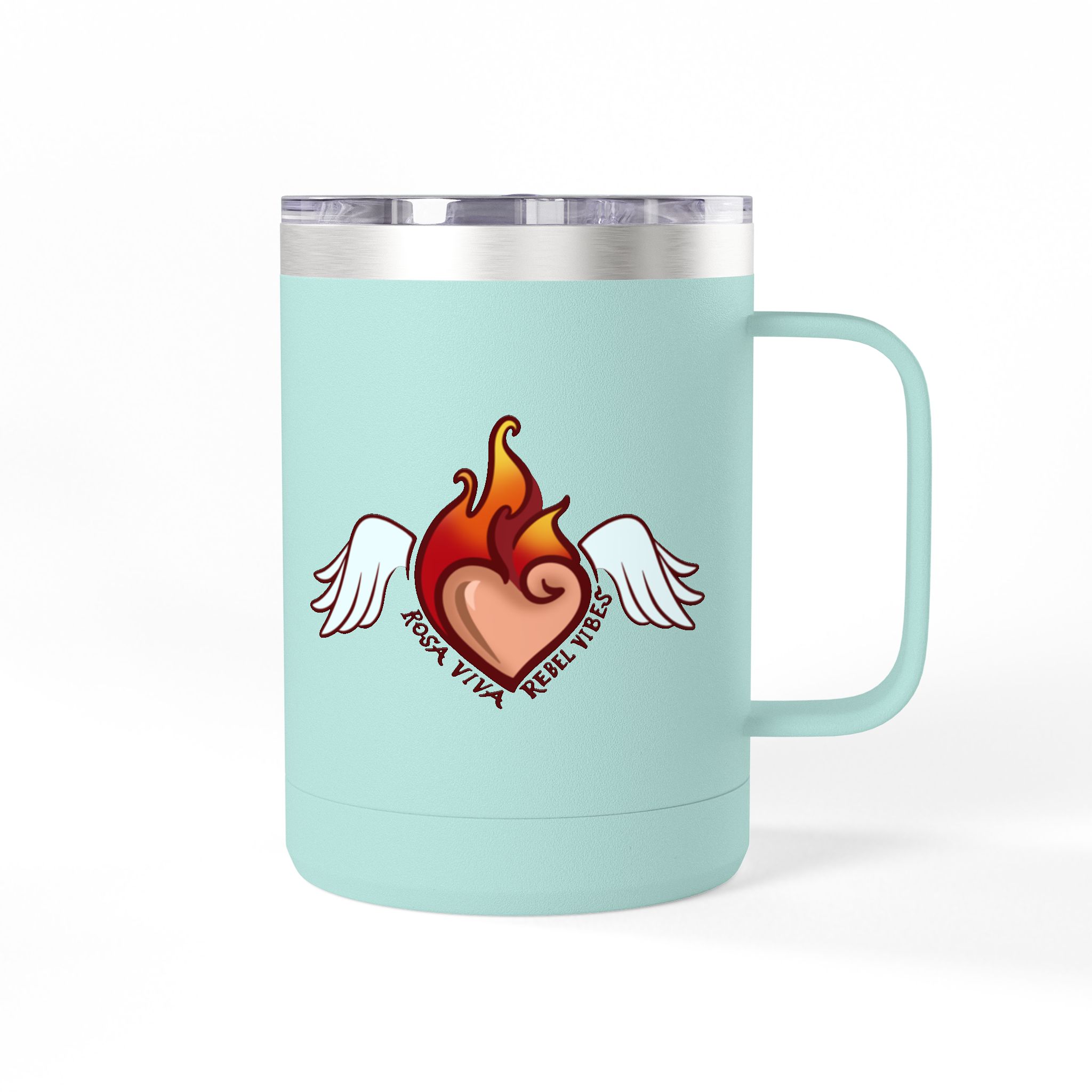 Heart & Wings Coffee Mug Tumbler, Unique Caffeine Love Cup, Gift for Romantic Occasions, Cute Heart Themed Drinkware, Angelic Inspired Mug